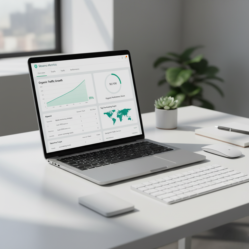 We helped Vexano Metrics improve their organic visibility through a custom SEO strategy and real-time analytics tracking. Their dashboard highlights strong keyword movement and consistent traffic growth.